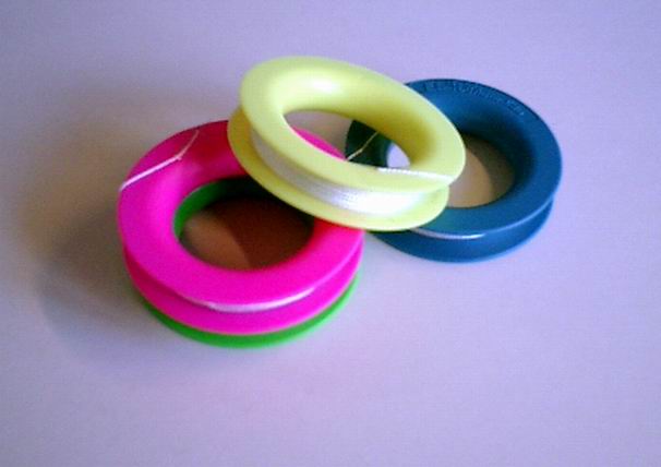Spule normale Größe, schmale Ausführung, auf dem Bild die rote obenauf. |